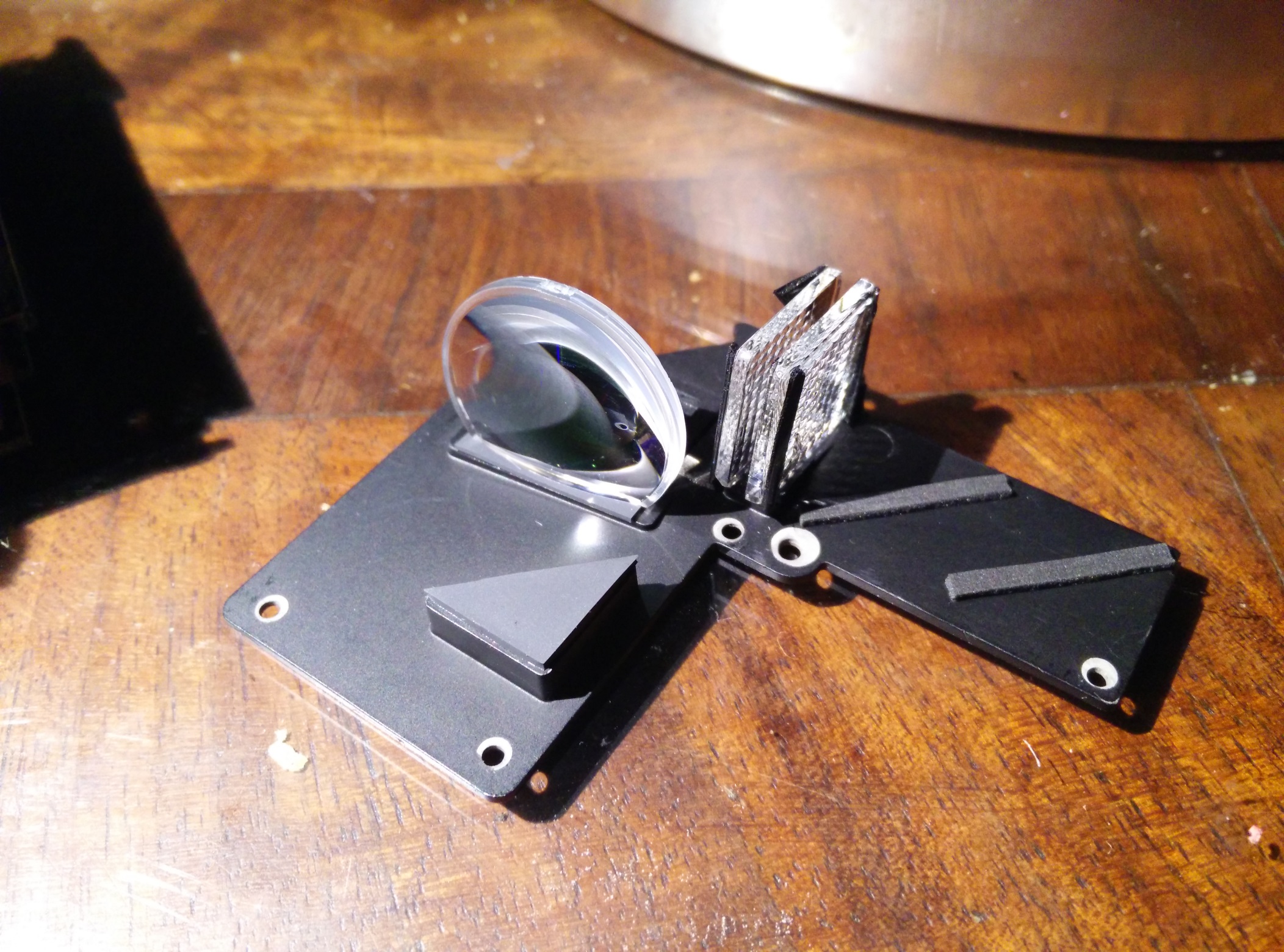 Seems I would also need to adjust the focal distance to get it to focus much closer. I'd also need to take out the diagonal filters and replace them with something that allows 405nm to reflect. Or perhaps if one 3w works I could just take them out and do a straight shot. I'm curious to see how the built-in optics works with the 405nm led replacements.