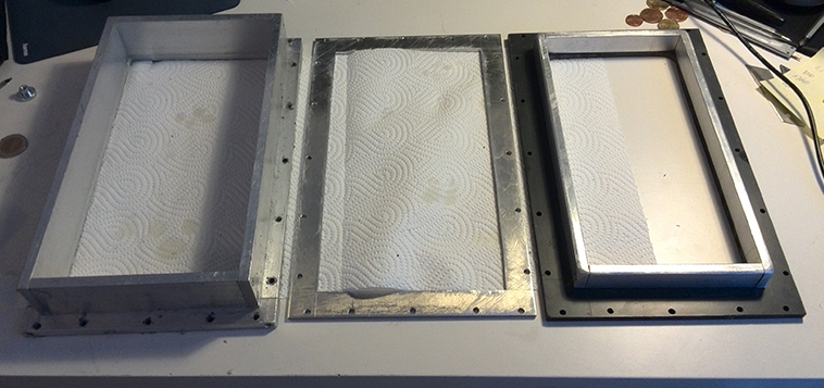 I just wanted to share my experience with making a flexvat. After seeing lots of great designs in this forums I decided to give it a shot myself. After failing with a acrylic version (Too thin material to withstand the forces) I decided to make one out of aluminum. And since I don't have a CNC router I decided to build it out of seperate alumium profiles and put it together with screws. That meant cutting a lot of threads, but now it's stable as hell