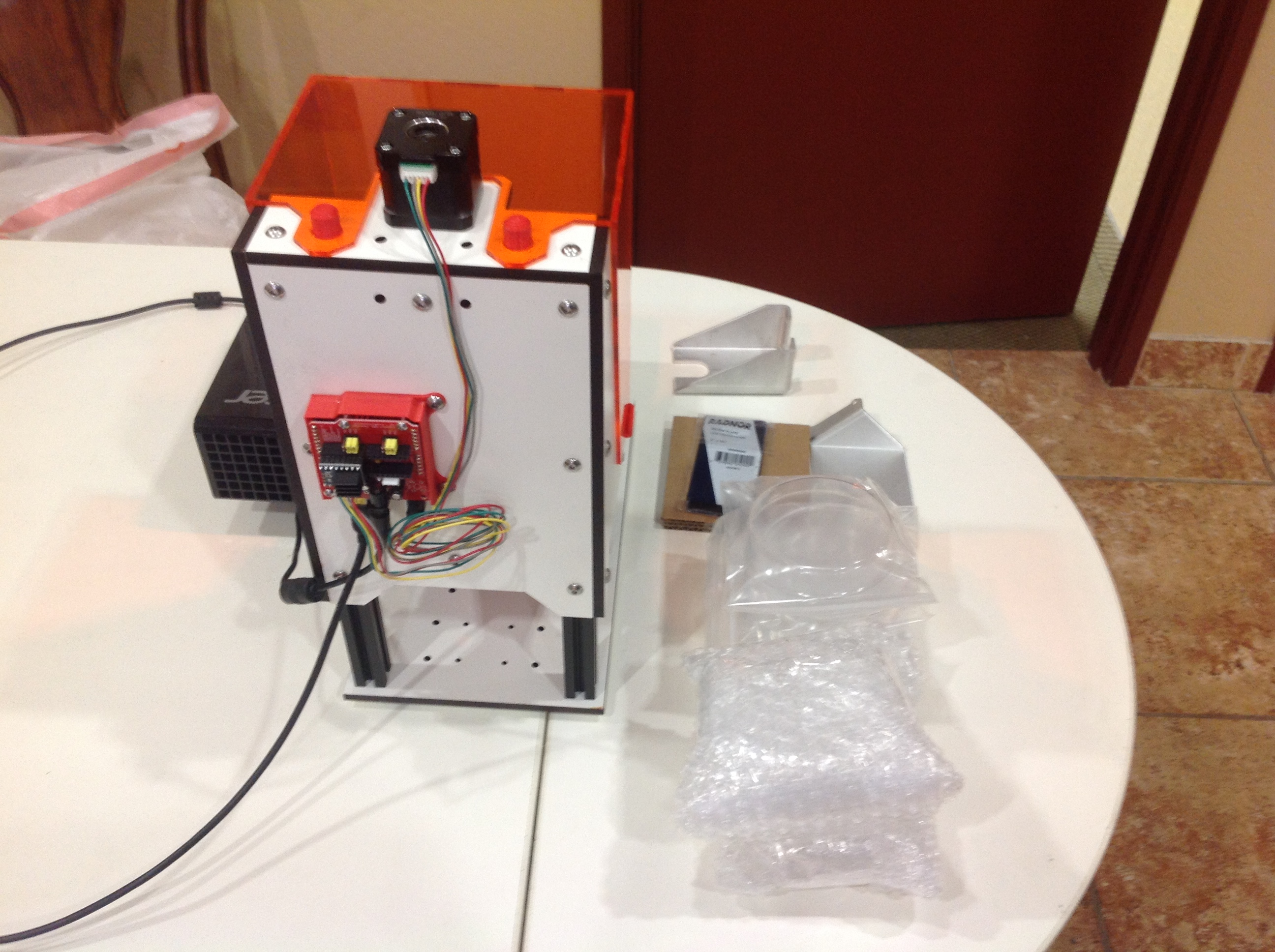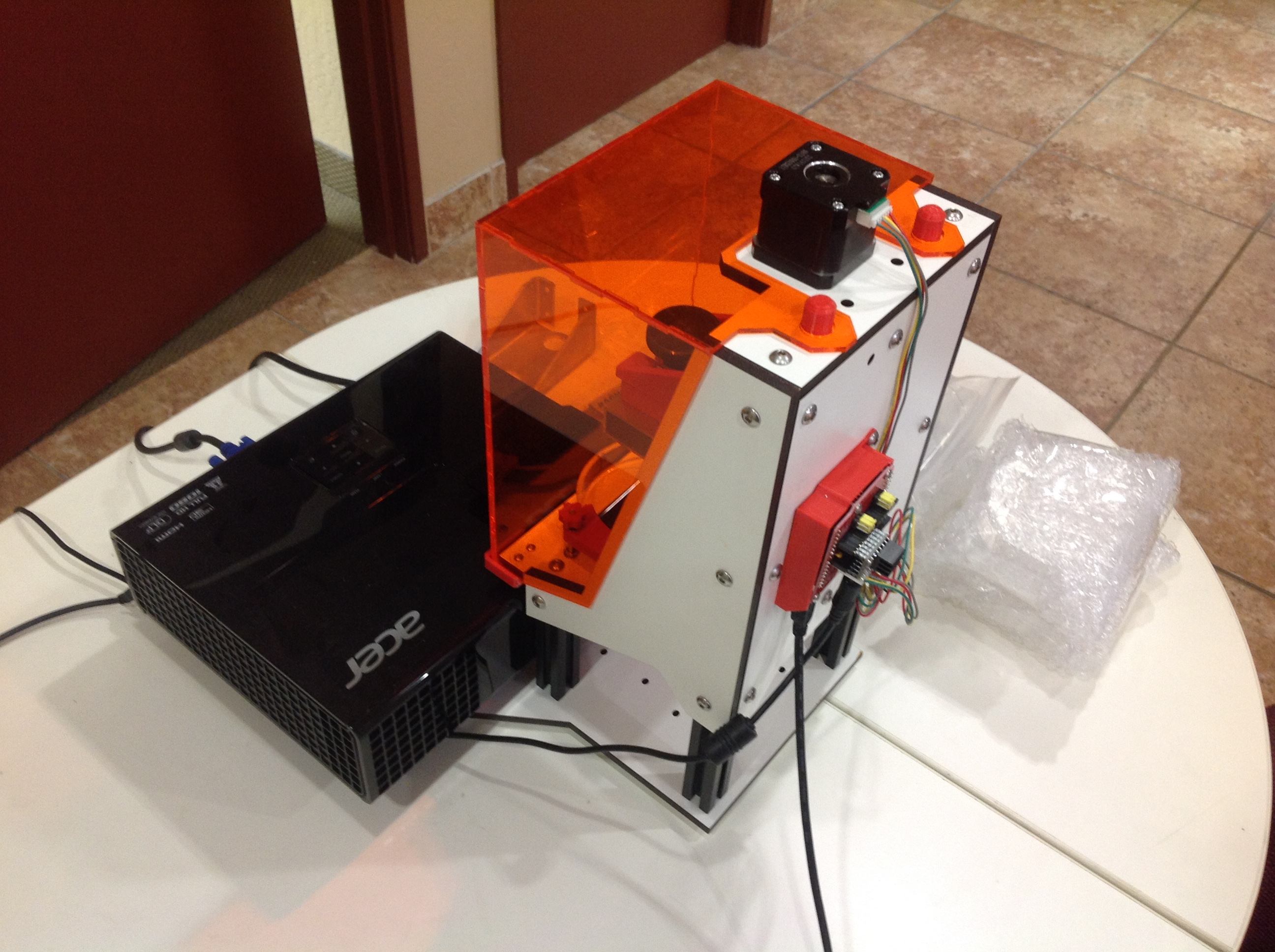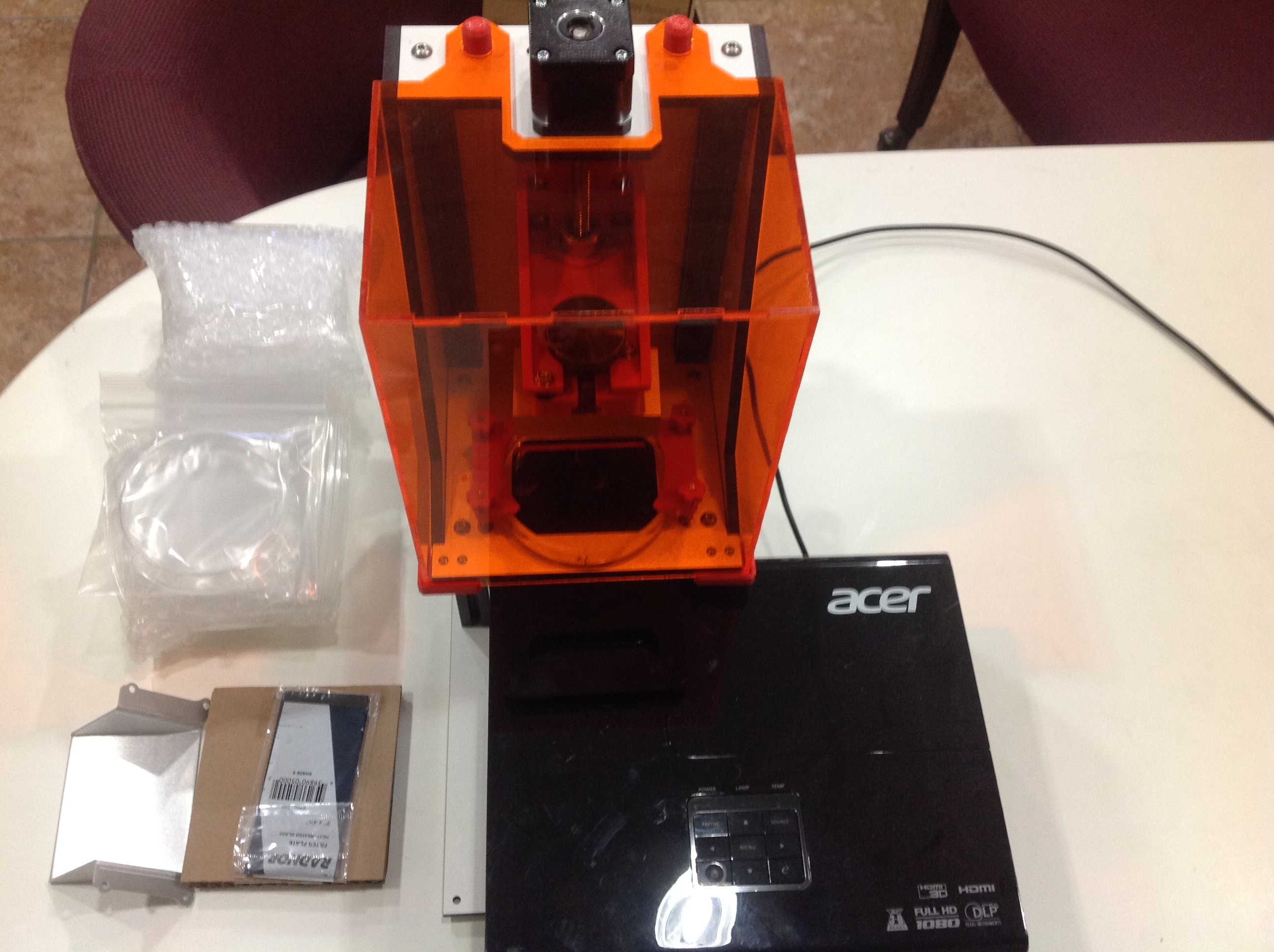 For sale: a very slightly used Little RP 3D printer with Acer P1500 HD projector. This is a great machine for the hobbyist but I'm going to a more professional model. Fully assembled and running, will probably need to be recalibrated after moving. Only run seven times. Going to upgrade to a different, much more costly machine Original Little RP Kickstarter package assembled with 8 extra coated vats, mirror , metal mirror and z axis mounts and other goodies. Projector is the Acer P1500 high-definition projector. Prefer local pick up but will ship. If local pick up,will throw in two containers of B9 resin, one cherry and one red, a little used out of each bottle, if need to ship would ship resins separately at additional charge . Have the original box for projector if wanted. In excellent condition. probably best to take projector off base and ship in its own box. Original cost over $1280. Asking $ 950 OBO + $35 ground shipping. Ship to USA only. PayPal or cash only. For pick up Item located in Gilbert, Arizona.