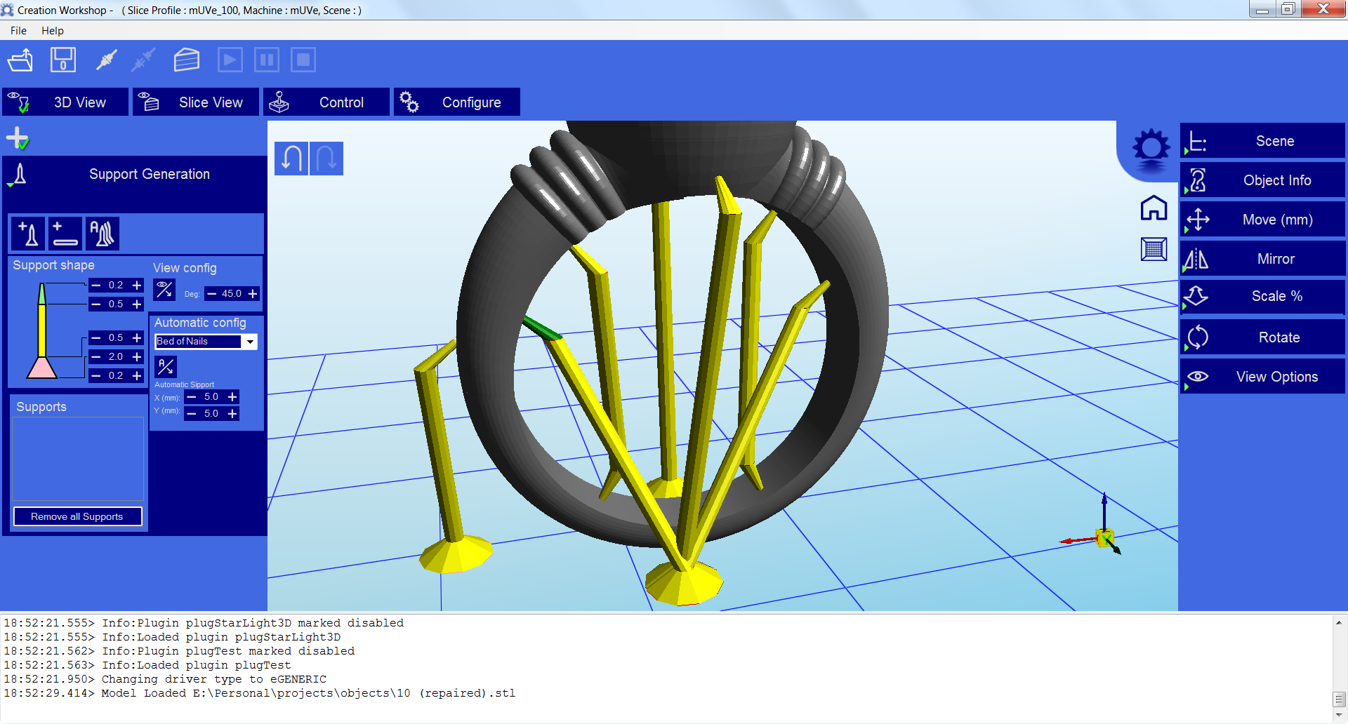 I've been working with Creation Workshop manual support editing lately. Now, individual supports can position their top and bottom tips, I've added a bit of automation and 'best guessing' to help select tip angles and placements. Intra-object supports can now be created and saved with the scene. I'll probably make a new release of the code soon.