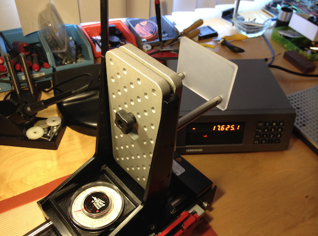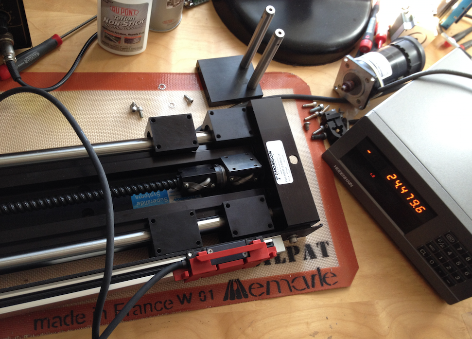 The integration with a twist; The “Z" axel system at its extreme, as the build-up evolves, at or on later dates I will post the updates. In over the next few weeks; I will have all the components and instruments, installed on the “Z" slide; This assembly is part of my second SLA build, for the bottom-up configuration, and is based upon the Galvo, LCD panel, and the DLP / LED/ LASER hybrid Projector? The three in one ultra-interchangeable module system that is factor in with a precision linear scale and readout.