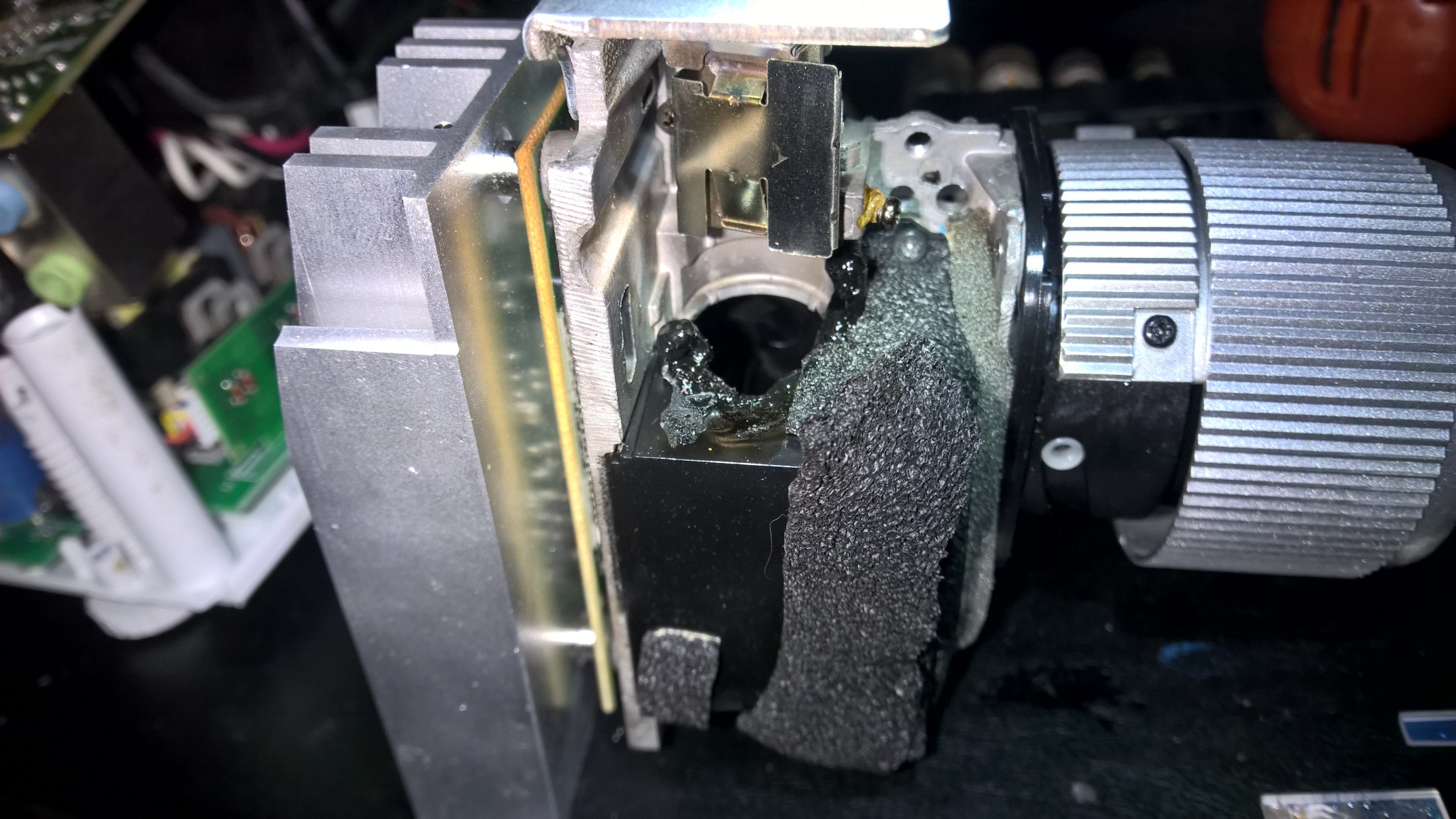 It also melted the black plastic holding the condenser lens (just after the light tunnel) and the lens itself (I guess it is plastic).