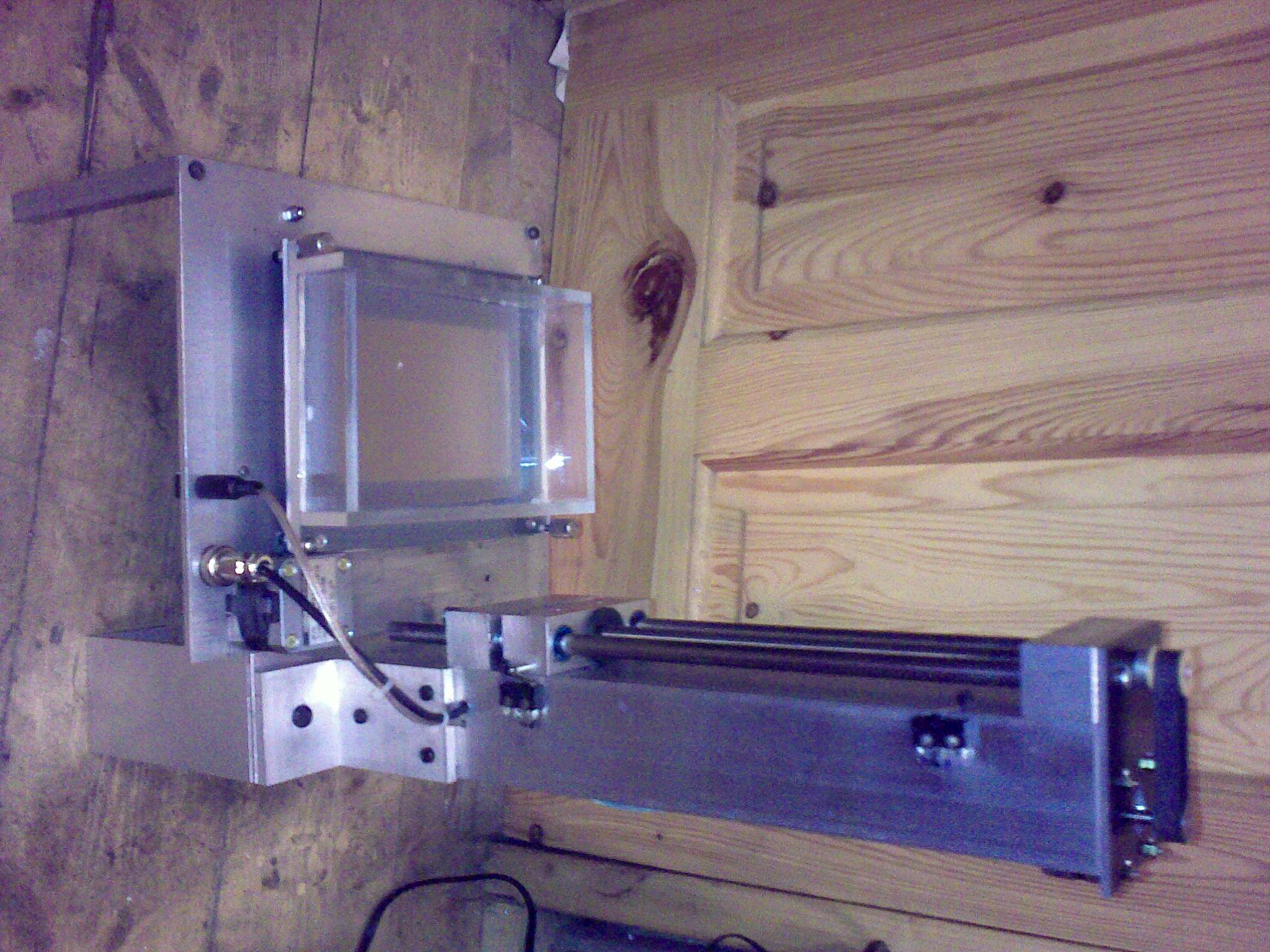 I made two vats, one from ally, the other "shown" plexi, the tilt /slide image is in another thread, but here is a copy showing the underside, it moves in a nice sideways and down action, but not sure if the motor is strong enough yet, with everyone saying that lots of force is needed, but should not be a problem to fit a bigger motor.