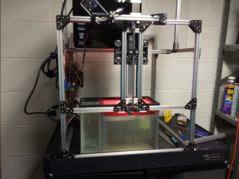 First 3d build here and it turned out really well. Specs at the moment are 7.5 x 4in x 7 tall. Resolution is currently 100 micron xy by 170 micron z layers. Thanks to Muve 1 and Pacmanfan for making these builds accessible to all. If anyone has questions feel free to shoot.