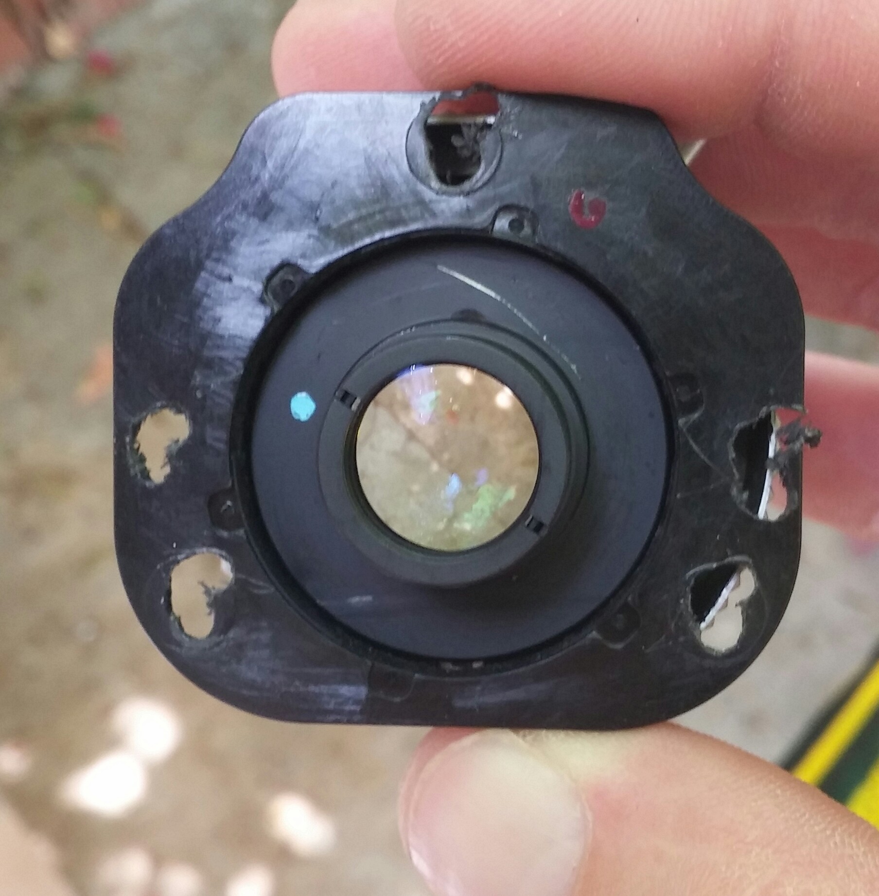 After you have the lens assembly out it's just a matter of opening up the mounting holes. You want to move the lens AWAY from the side that isn't in focus. I moved mine down and to the left looking at the projector from the front. The picture is from the back of the lens assembly so the holes are opened up to the right. I used a 3mm drill bit which isn't the most precise method... A small file would be much cleaner....
