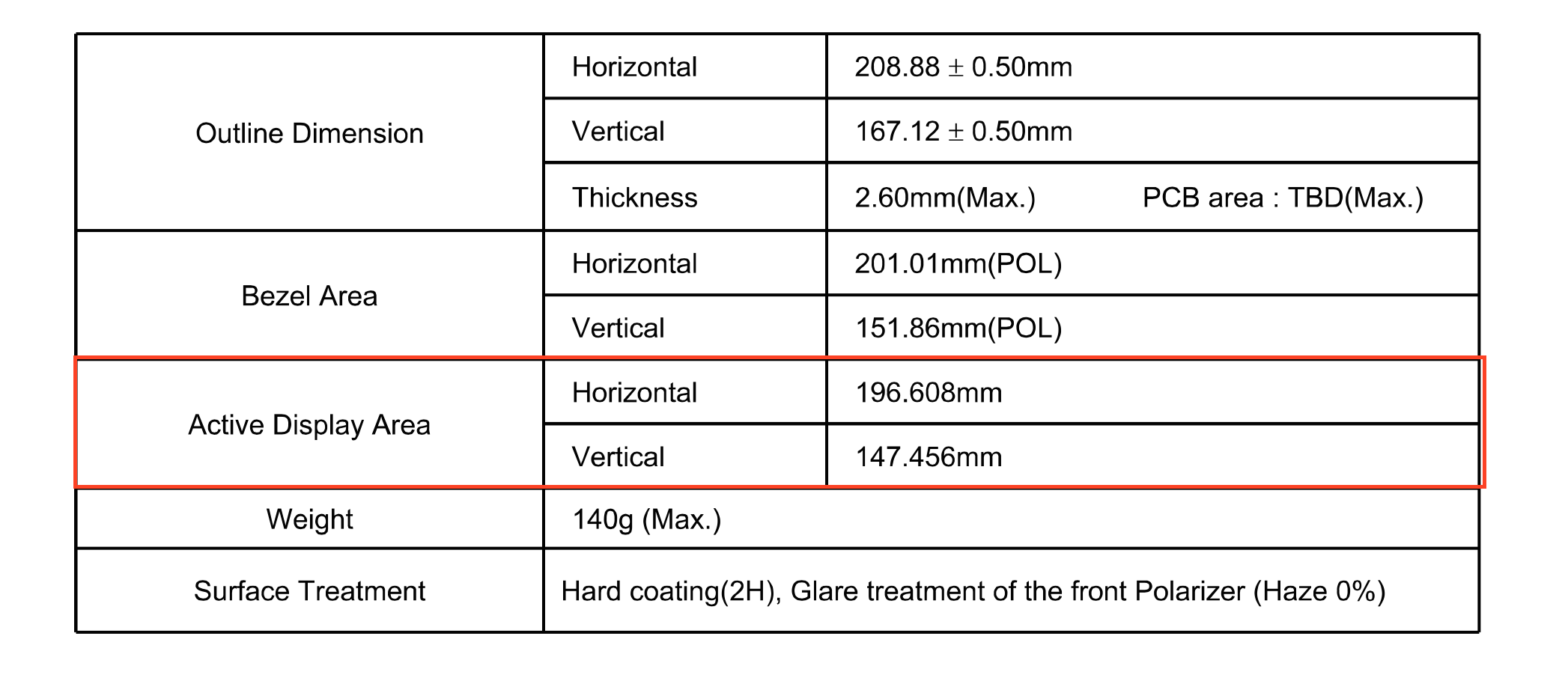 What're dimensions people are entering into CW for the display?