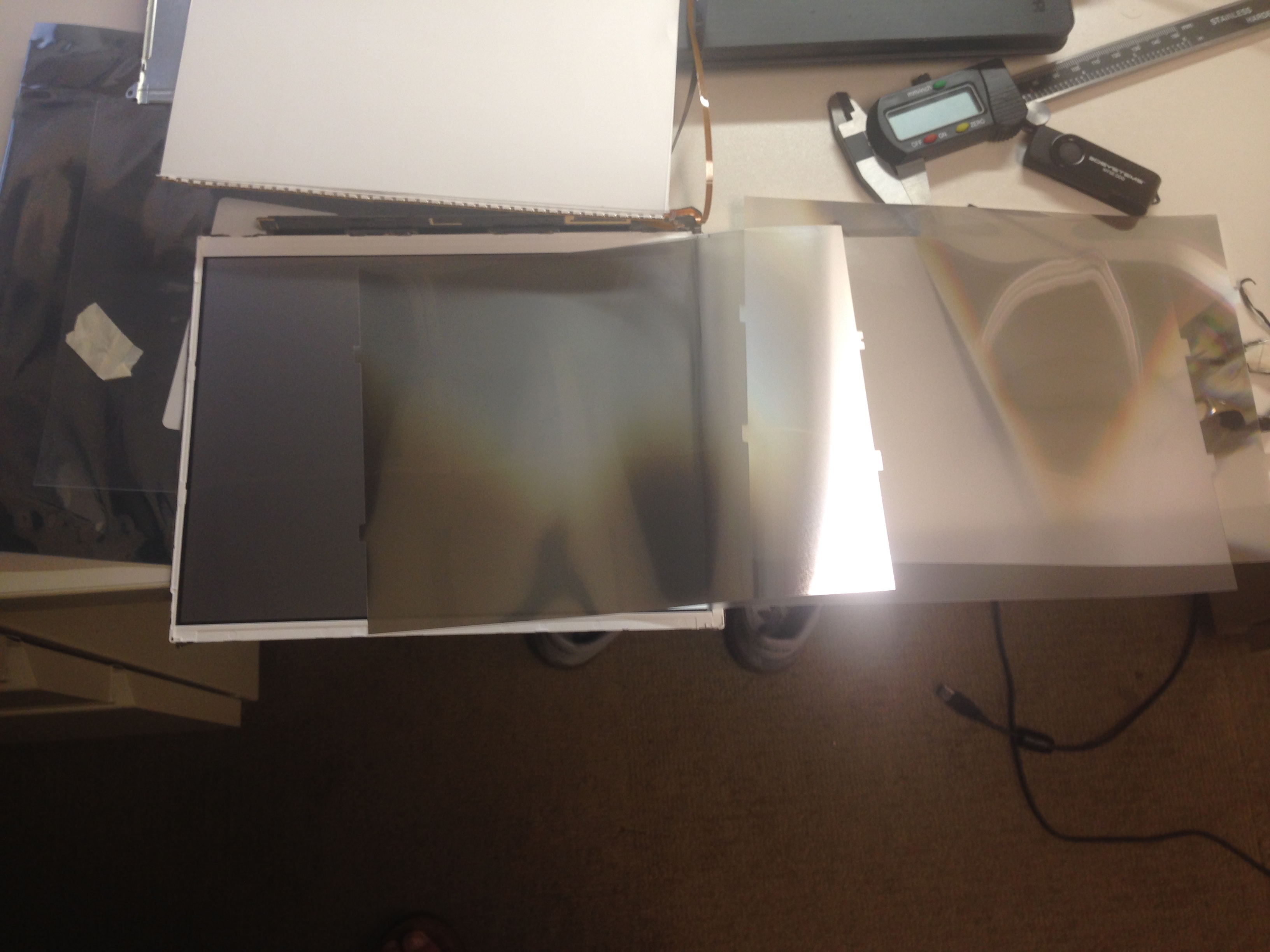 You did it right Anderson, Removing all the black tape along the edges allows removal of the backlight and all its films. You should be left with just the LCD Glass (black on one side, reflective on the other) and the PCB control board.