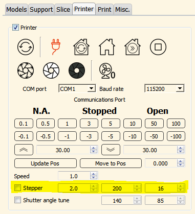 - You need to adjust the screw pitch inside Printer tab. AFAIK, LittleRP has 8 mm pitch, 200 steps per revolution, and 8 microstepping. So you can choose the three values 8.0 / 200 / 8. Please advise me this is not correct.