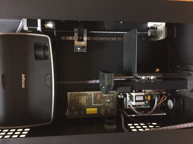 I have just finished my printer. Principle as b9creator. The sliding operation is controled by a stepper motor and control board is a ramps-board. I will replace the ramps-board with a board containing only two stepperdrivers because the ramps-board was taken from my ultimaker