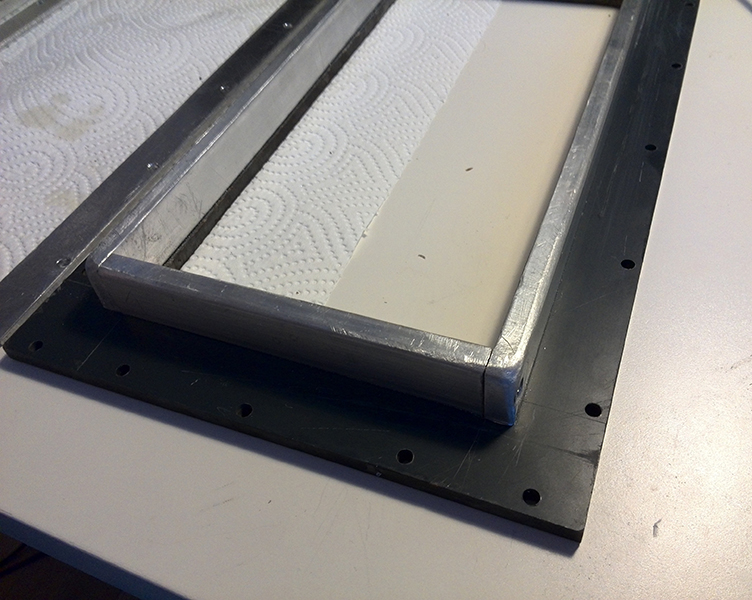 I just wanted to share my experience with making a flexvat. After seeing lots of great designs in this forums I decided to give it a shot myself. After failing with a acrylic version (Too thin material to withstand the forces) I decided to make one out of aluminum. And since I don't have a CNC router I decided to build it out of seperate alumium profiles and put it together with screws. That meant cutting a lot of threads, but now it's stable as hell