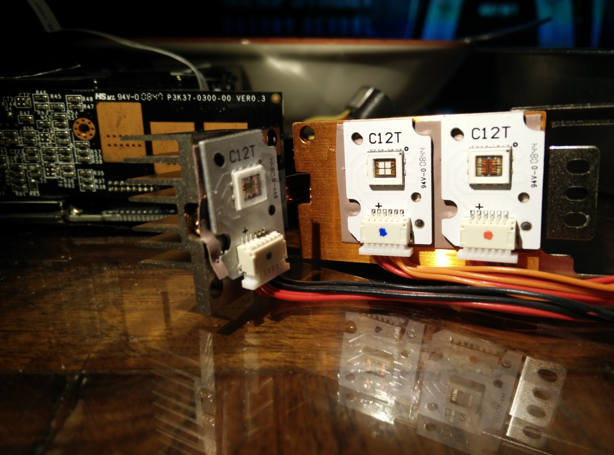 The DLP chip is supposed to be 858x600, which isn't the greatest. It looks to have a blue, red, and green led, with a rather heatsink and two tiny fans. For what I paid, its worth it just to get these six leds... but I'm wondering if I could get reasonable cure speeds with with three 405-410nm 3w?